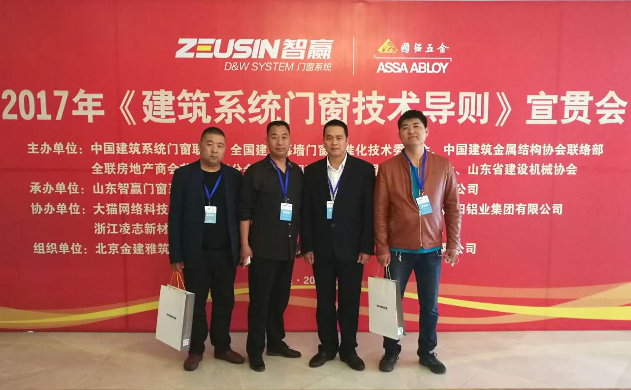 2017年4月16日,山東智贏門窗系統(tǒng)有限公司承辦的《建筑系統(tǒng)門窗技術(shù)導(dǎo)則》宣貫會在山東棗莊成功舉辦。中國建筑金屬結(jié)構(gòu)協(xié)會秘書長、全聯(lián)房地產(chǎn)商會顧問劉哲;中國建筑系統(tǒng)門窗聯(lián)盟執(zhí)行理事長兼秘書長孟繁軍;中國住建部幕墻門窗標準化技術(shù)委員會秘書、全國住建幕墻門窗標準化技術(shù)委員會委員及秘書處主任劉會濤;中國住建金屬協(xié)會副會長張俊乾;山東省建設(shè)機械協(xié)會會長張永光;連云港市門窗協(xié)會會長潘國柱;大眾日報棗莊記者站站長張環(huán)澤、山東廣播電視臺棗莊記者站站長張昌興等300多人參加了本次會議。