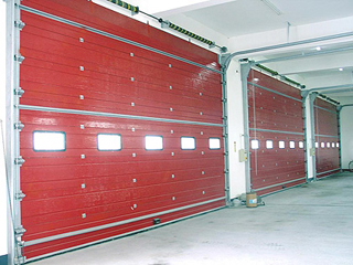 消防車庫門專為消防車庫量身設計制作的專用門,開關迅速,mention一般采用消防紅色。